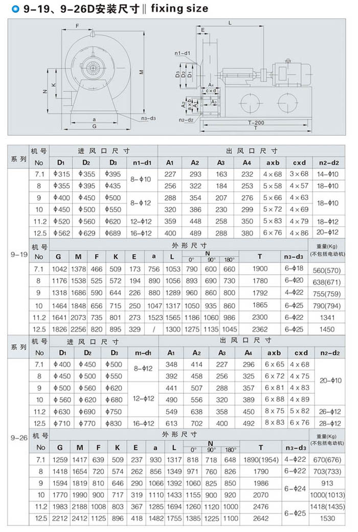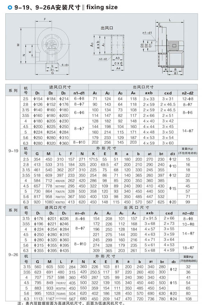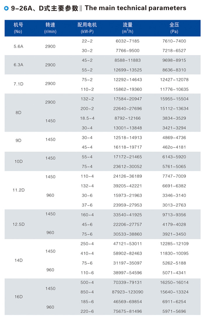 9-19、9-26型高壓離心通風機可廣泛用于輸送物料、空氣及無腐蝕性不自燃、不含粘性物質的氣體。