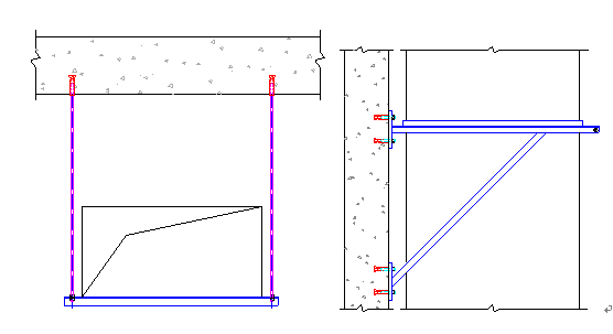 洞打好后,用水把墻洞澆濕,并沖凈磚屑,在墻洞內先填塞一部分1:2水泥沙漿,埋入支架。